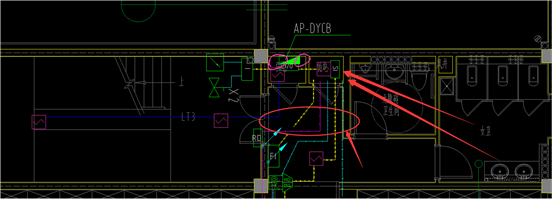答:战时使用的给水引入管(防护密闭套管和阀门)、口部的冲洗龙头(防护套管密闭和阀门)、电站内的给排水管线、平时均应安装到位,其余给水管平时不安装(如箭头处)。