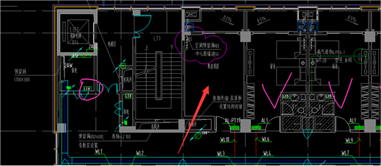 46. 5#楼如下图所示:箭头所指桥架未注明规格尺寸,请明确?