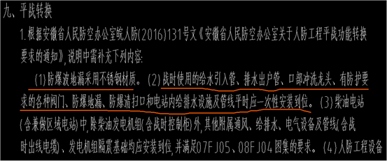 3、战时安装的配电箱、线缆、水箱、水泵、设备、衔接管道、阀门、风机、风管、风阀等。