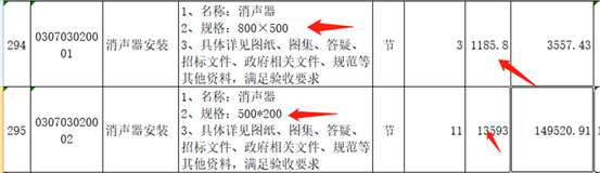 2)消声器500*200的调整后综合单价为437.81/节,该部分对总价影响很小,最高投标限价不调整;投标人综合考虑报价,中标后不予调整;