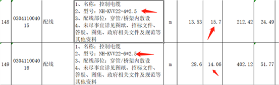 3NH-KVV22-6*2.5调整后的综合单价为22.07/米,该部分对总价影响很小,最高投标限价不调整;投标人综合考虑报价,中标后不予调整。