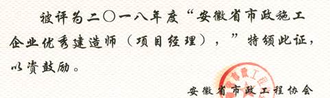 现有安徽省市政工程协会颁发的获奖证书名称为“安徽省市政施工企业优秀建造师(项目经理)”是否满足本项目加分要求。望贵单位给予明确回复,谢谢!