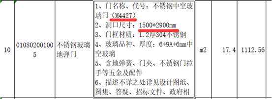 回复:经复核不锈钢中空玻璃门的名称和代号有误,应为M1529,投标人接收18ZHZB后无需调整,中标后按M1529施工。