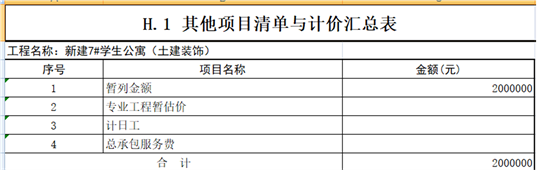 回复:①经复核,Excel版清单和最高投标限价中新建7#学生公寓(土建装饰)单位工程其他项目清单与计价汇总表表格导出有误,实际甲供材材料费用447585.33元(含税价)已计入最高投标限价中,投标人可以按接收的18ZHZB文件格式进行填报,也可以按下表。