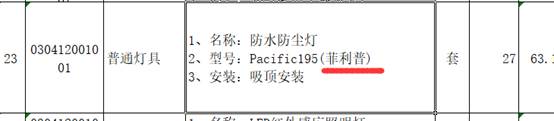 答:品牌以招标文件为准,清单项目特征描述中“菲利普”三字多余,投标人不要在软件中自行修改,按本说明报价和实施即可。
