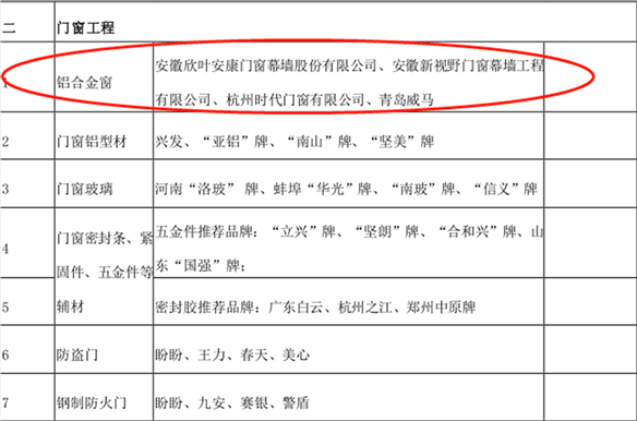 1、关于圩美·磨滩项目民宿装饰装修及景观工程(招标项目编号:2020BFBGZ00369)材料品牌的相关答疑:我公司仔细阅读该项目招标文件后发现品牌推荐表第二项“门窗工程”第一条“铝合金窗”推荐品牌为“安徽欣叶安康门窗幕墙股份有限公司”、“安徽新视野门窗幕墙工程有限公司”、“杭州时代门窗有限公司”、“青岛威马”。请问该项要求是否是铝合金窗生产厂家的品牌推荐?如果是,请问是否可以对门窗生产厂家不作要求,因为材料已经做出品牌要求,生产厂家是否可以由中标单位自行决定?