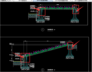 :涉及,红色区域为沥青新老路面衔接,蓝色为混凝路新老路面衔接。做法详见设计图纸。