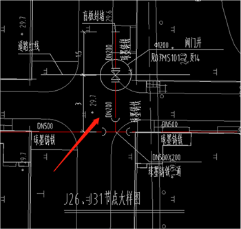 答:J31此处节点为DN300管径,阀门、盲板调整为DN300。