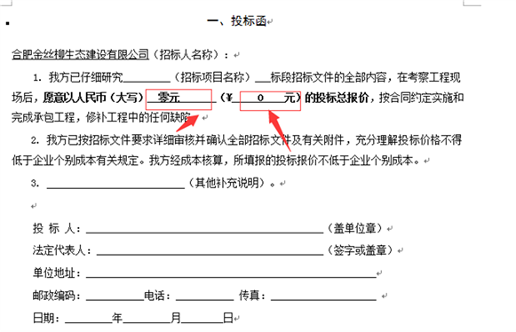 2、新点投标文件制作软件中的投标文件(报价文件)中的投标函(报价文件)中的投标总报价按“0”元填写,详见下图。