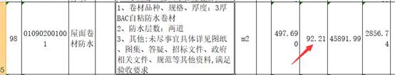 5D15#3BAC自粘防水卷材2道综合单价为92.21/m2,而D11#楼为137.32/m2,请解释?