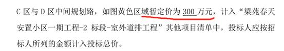 12、梁苑春天安置小区一期工程-2 标段-室外道排工程中,C 区与 D 区中间规划路暂定价300 万元,请问是否需计税?