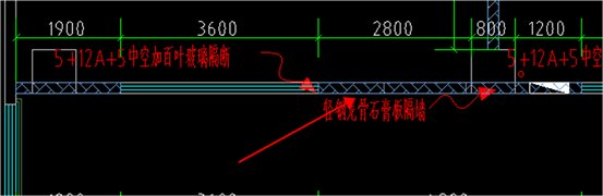46、2层以上走廊立面1200以下是陶瓷薄板,新建隔墙图上标注为轻钢龙骨石膏板隔墙,是否有误?如图: