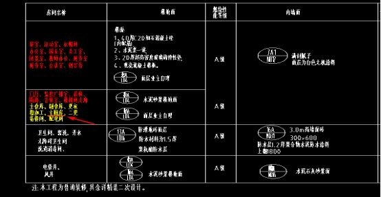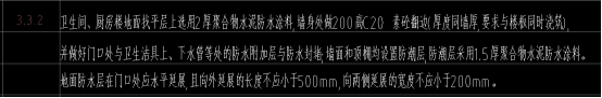 (17)  建筑说明的室内装修一览表中厨房位置未做防水,在建筑说明3.3室内防水中厨房与卫生间防水做法相同,问:(1)厨房房间(楼地面、墙面、天棚)是否按建筑说明3.3内容计入防水?(2)卫生间房间防水工程在建筑说明3.3条防水材质、翻遍高度与装修做法表中显示的材料、高度不一,已何为准?(如下截屏所示)