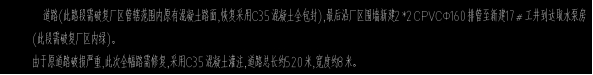 道排工程:厂区内外沥青道路及混凝土道路破复、市政沥青道路及人行道破复、侧石破复、雨污水管井破复等;