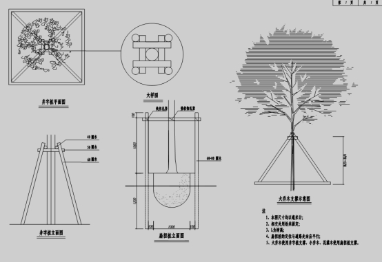 答:高杆女贞考虑井字撑,如下做法: