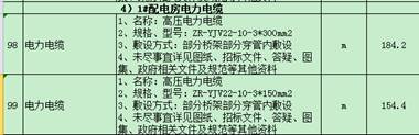 清单电缆型号为