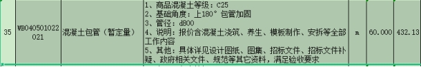 回复:经复核,D800混凝土包管(暂定量)比D800混凝土包管多了土方开挖、回填等工作内容,故两者单价不一致,详见招标补疑暂定项目内容。投标人应充分考虑该部分差异,综合考虑报价。