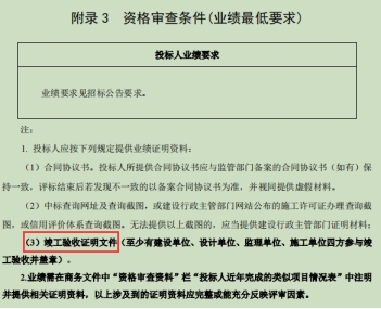 1.招标文件对业绩证明资料要求中,竣工验收证明文件能否为供电公司出具的验收证明文件?