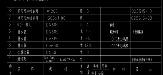 3、潜污泵未见安装管线图纸,请补充图纸,另请明确控制柜及液位开关的规格?