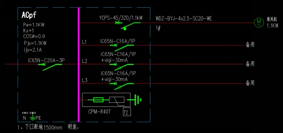 电施平时动力平面图中,排污泵ACw2电源进线配管系统图未标注规格型号,如下图箭头所示,请明确。