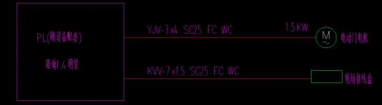 答:配线为NH-KVV22-2x2.5-FC,配管为2xφ50无缝钢管。