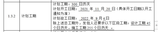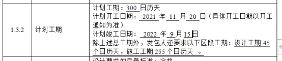 2.计划工期为300日历天,而所给计划开工日期至竣工日期只有289日历天,请具体明确时间要求。