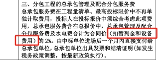18.第二章投标人须知的10.13项招标人其他要求中说明总承包服务费计算基数为合同价(扣暂列金和设备费用)的2%,但在“中国科学院临床研究医院实验室工程招标工程量清单、最高投标限价编制补疑”文件中(五)总承包服务费的的计算基数为中标价的2%(不含暂列金额),