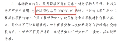 答:已复核,无误。暂列金额为500万元,是按除税价计入;防水甲供材部分为不可竞争费用,按含进项税总价269958.93元计入“装饰工程”单位工程其他项目清单中专业工程暂估价中,此价格为含进项税材料价格计算出来,不再计取增值税,最高投标限价未重复计税;“装饰工程”单位工程增值税计算基础请按发布的清单控制价EXCEL及补疑执行,投标自行修改软件内容。