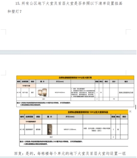 答:地库大区灯具以二次机电图为准,需参照上述参数提供灯具选型给设计确认;公区、架空层灯具选型详见装饰物料清单。