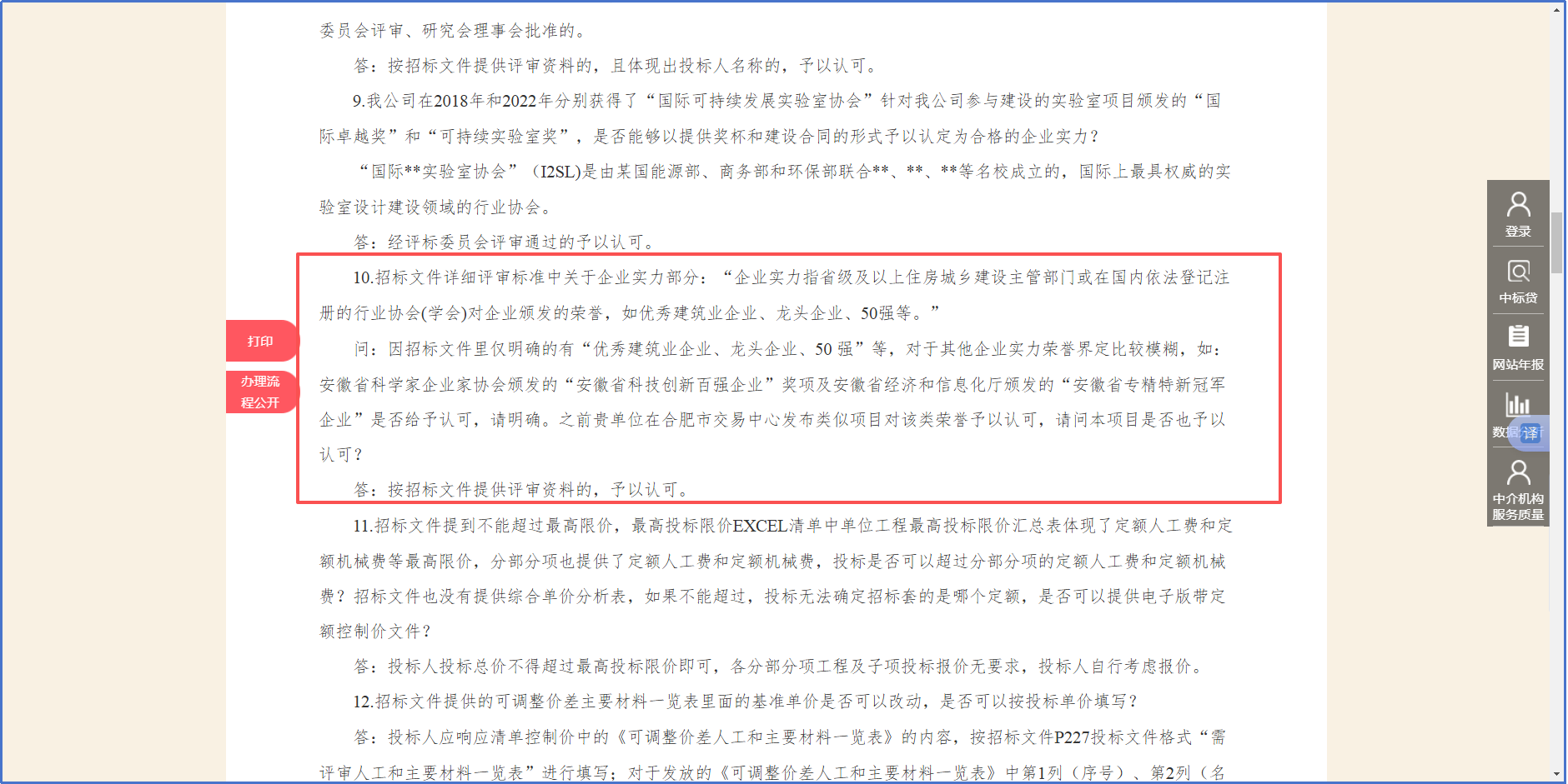 问:因招标文件里仅明确的有“优秀建筑业企业、龙头企业、50 强”等,对于其他企业实力荣誉界定比较模糊,如:**省科学家企业家协会颁发的“**省科技创新百强企业”奖项及**省经济和信息化厅颁发的“**省专精特新冠军企业”是否给予认可,请明确。之前贵单位在合肥市交易中心发布类似项目对该类荣誉予以认可,请问本项目是否也予以认可?