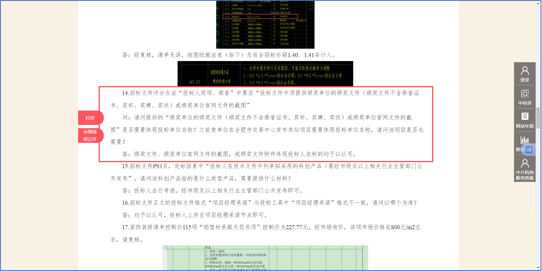 问:请问提供的“颁奖单位的颁奖文件(颁奖文件不含荣誉证书、奖杯、奖牌、奖状)或颁奖单位官网文件的截图”是否需要体现投标单位名称?之前贵单位在合肥市交易中心发布类似项目需要体现投标单位名称,请问该项目是否也需要?