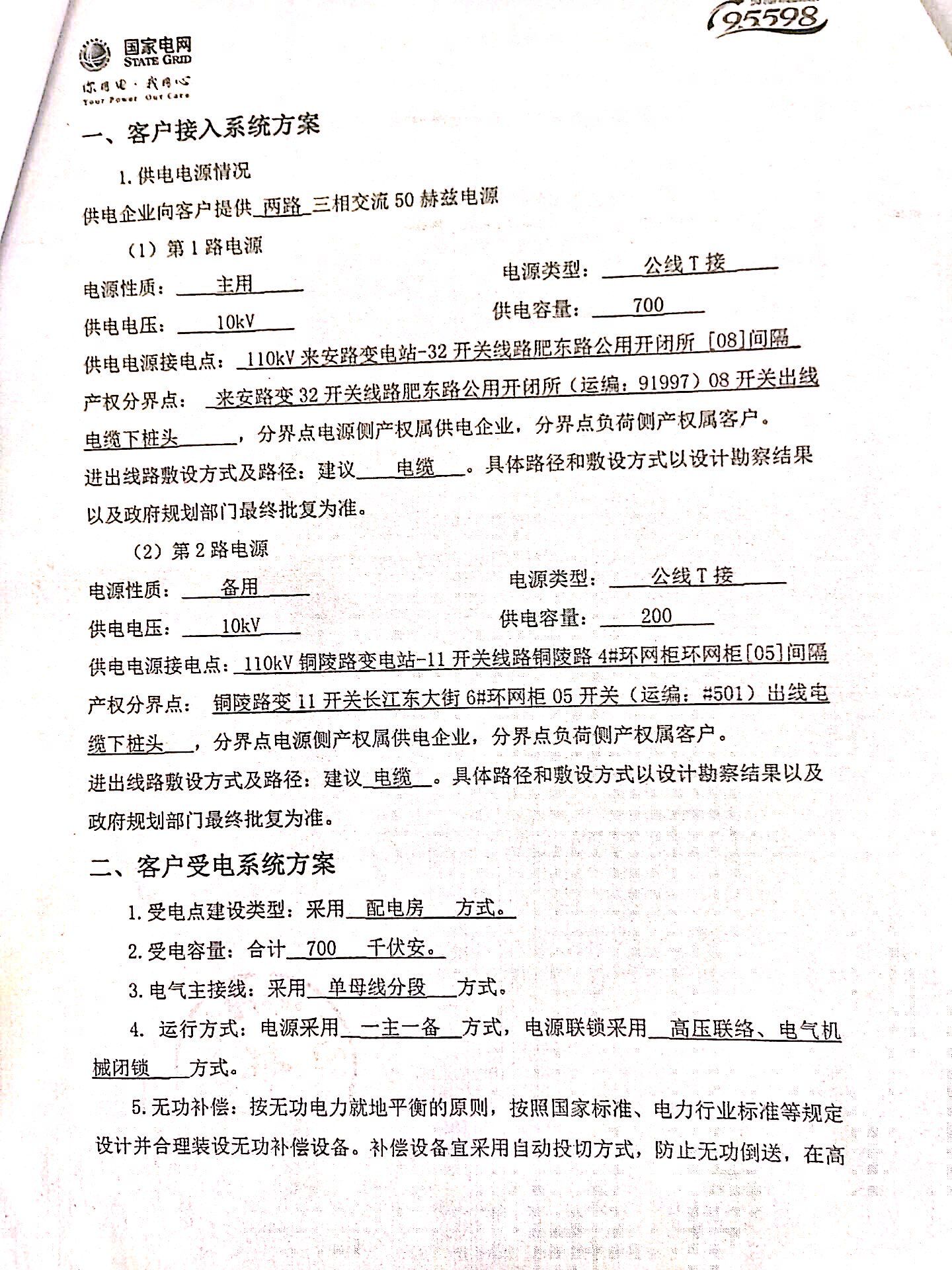 5.经现场勘查,备用电源铜陵路变11开关4号环网柜未找到,请提供供电公司批复文件。