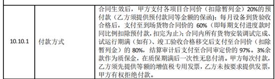 答:每期支付进度款时同比例扣除预付款后,支付至到场货物合同价的60%。