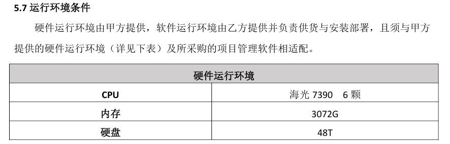 a)乙方提供的项目管理软件(如P6、PPE、PROJECT等)服务器,是否有具体的参数要求?