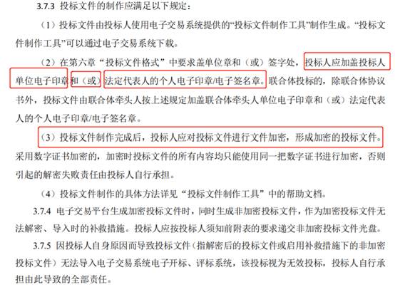 疑问:(1)第2条:电子章是单位和法定代表人都需要,还是其中一种就可以;(2)第3条:投标文件是否必须加密。采用何种方式加密,如何告知开标人密码。