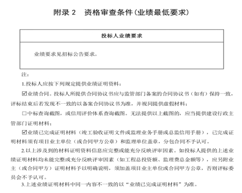 (2)投标文件中须提供业绩证明材料,证明材料须符合投标人须知前附表中附录 2的要求。