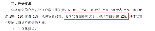 3.招标文件提到套内安置面积略大于上述户型面积的92%当中的套内安置面积是否就是不含公摊部分的套内建筑面积。