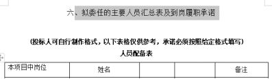 招标文件P84页人员配备表是否只需填写项目经理和技术负责人信息,其他人员信息无需填写,提供到岗承诺即可。